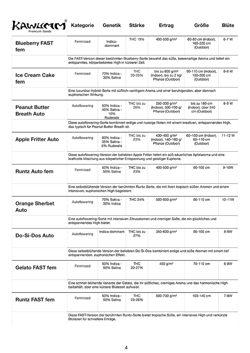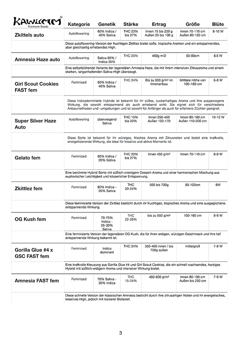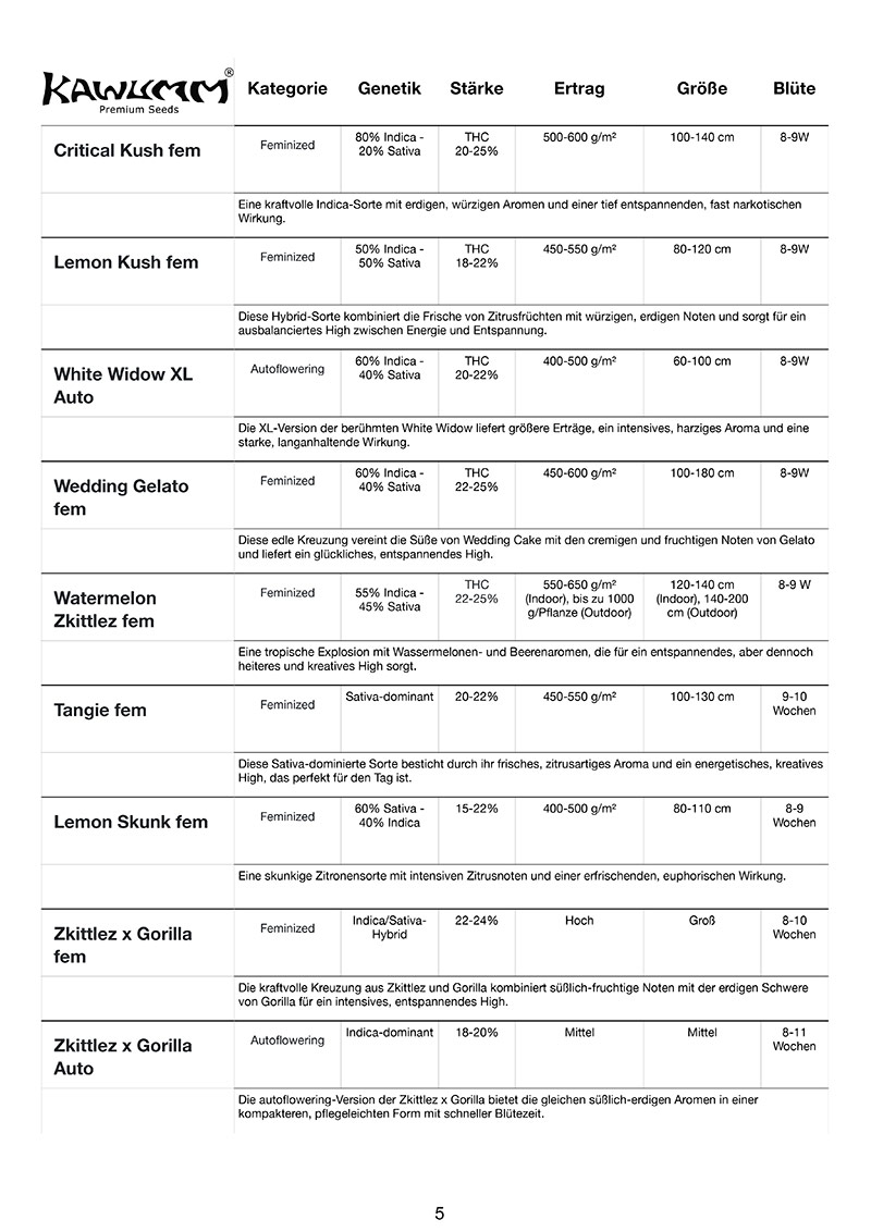 Aromen, Wirkungen und Anbaueigenschaften findest Du in der Übersicht auf dieser Seite. Kawumm liefert Qualität seit 1989